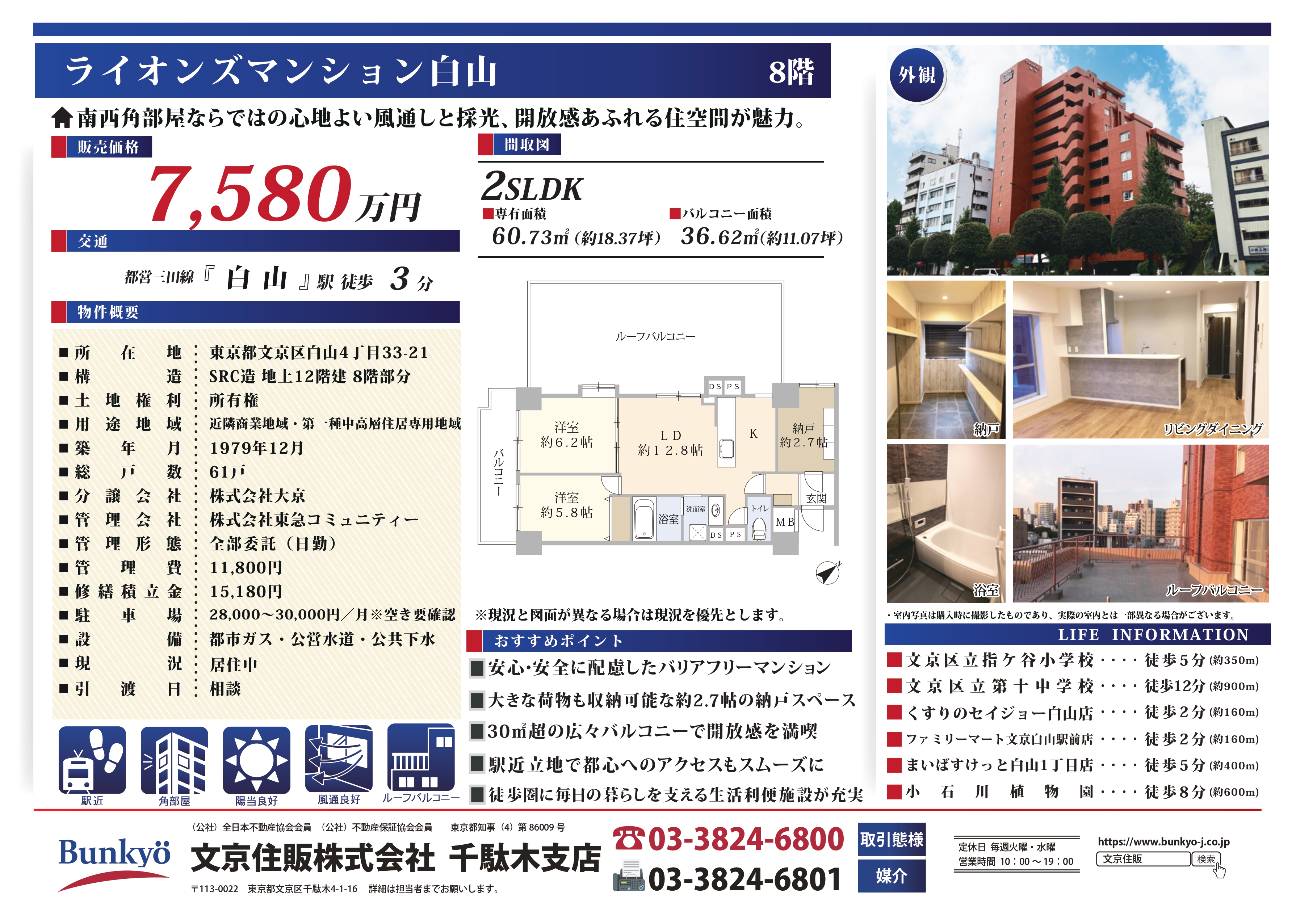 【委任物件】ライオンズマンション白山(文京区白山4丁目)