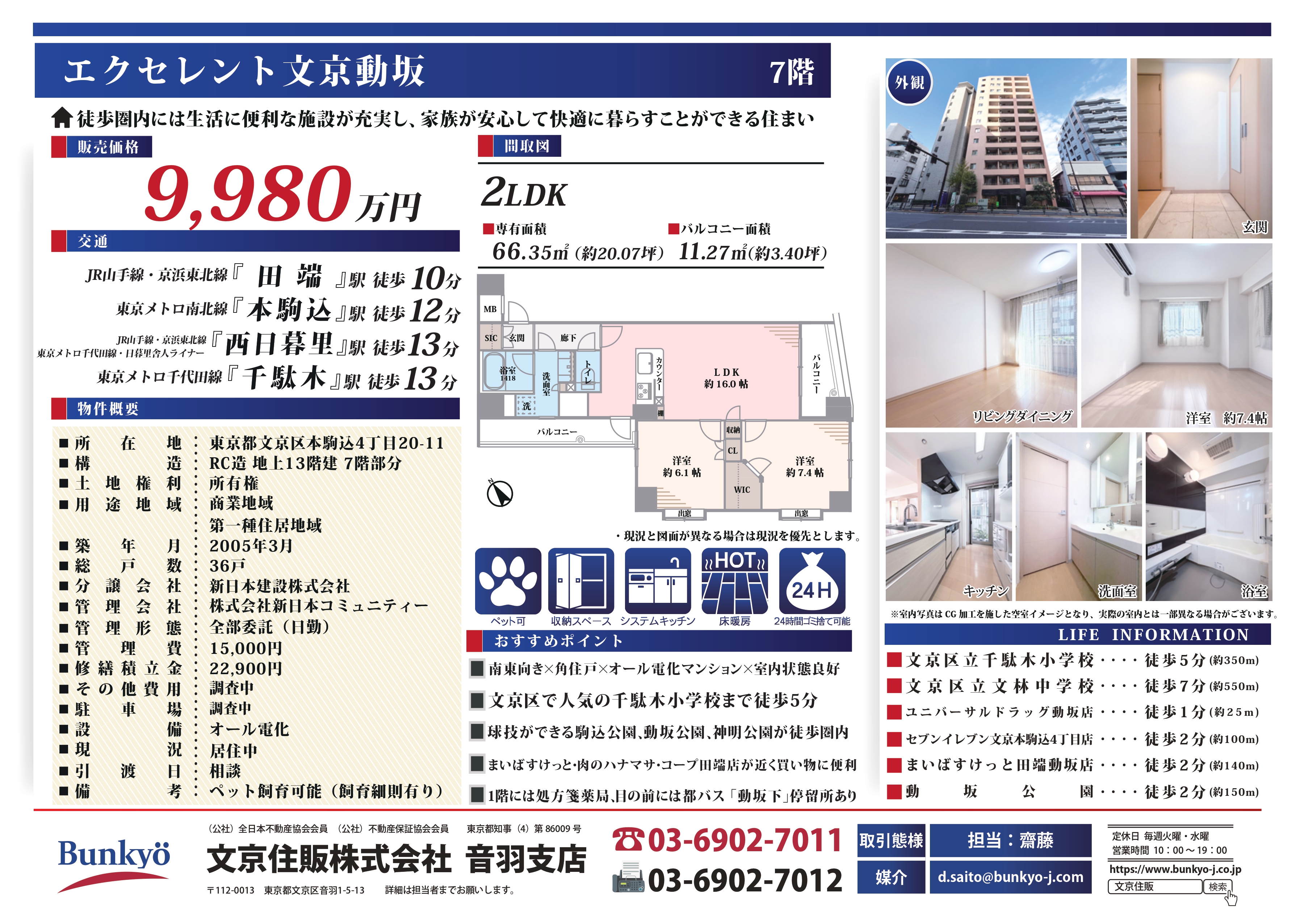 【委任物件】エクセレント文京動坂(文京区本駒込4丁目)