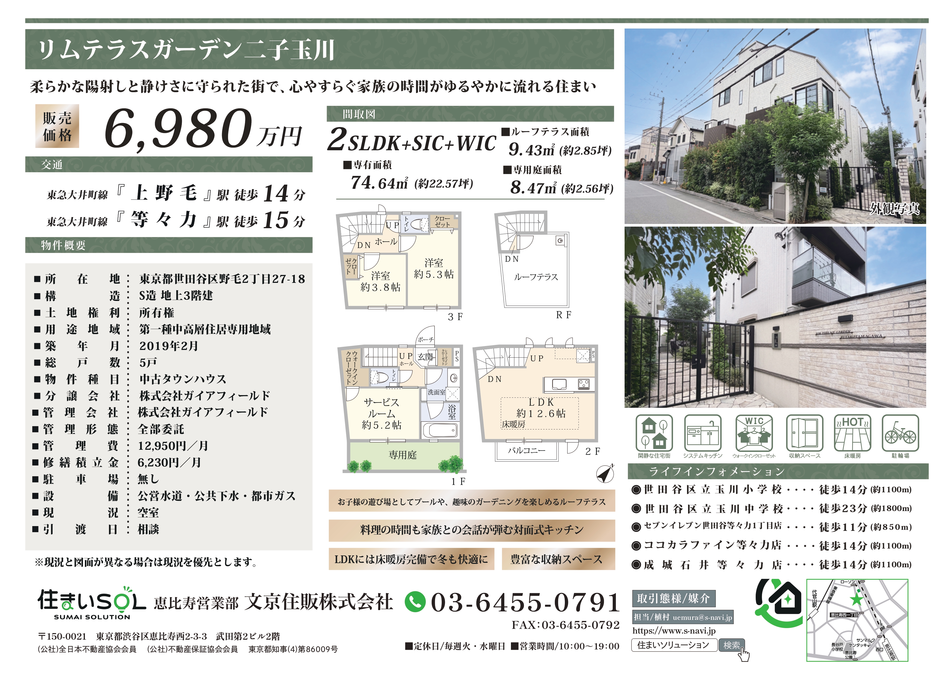 【委任物件】リムテラスガーデン二子玉川(世田谷区野毛2丁目)