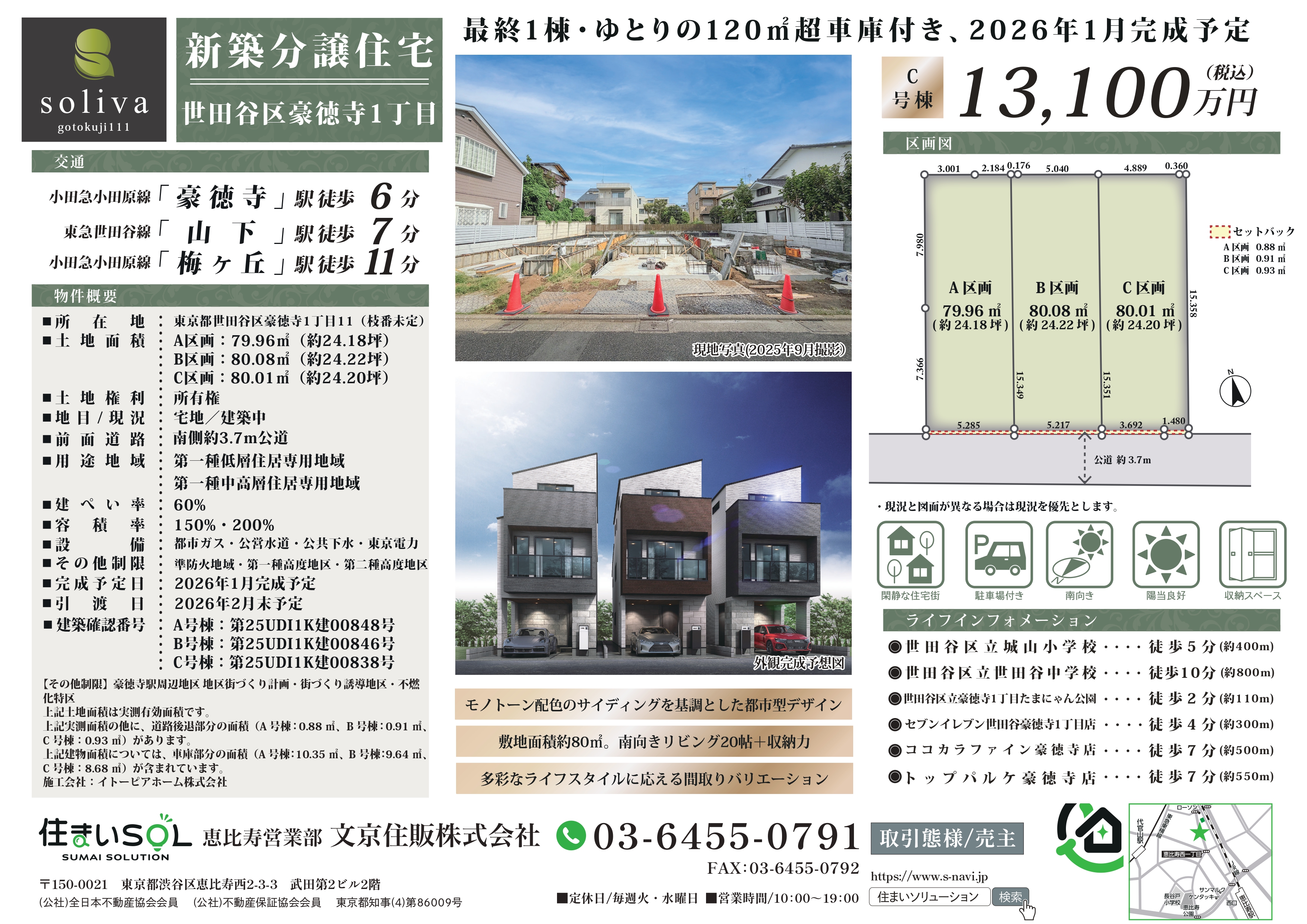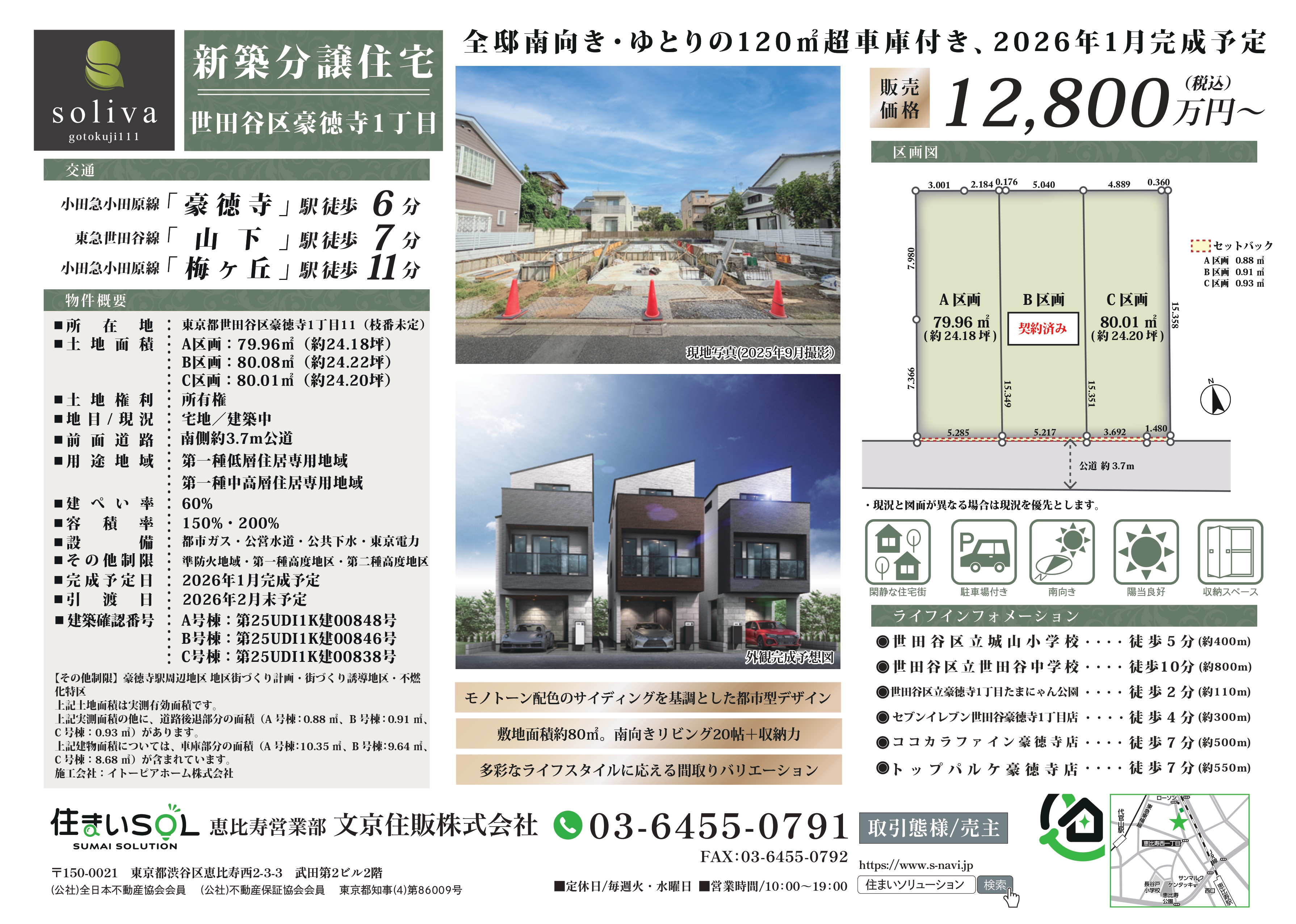 【売主物件】soliva豪徳寺111(世田谷区豪徳寺1丁目新築戸建3棟)
