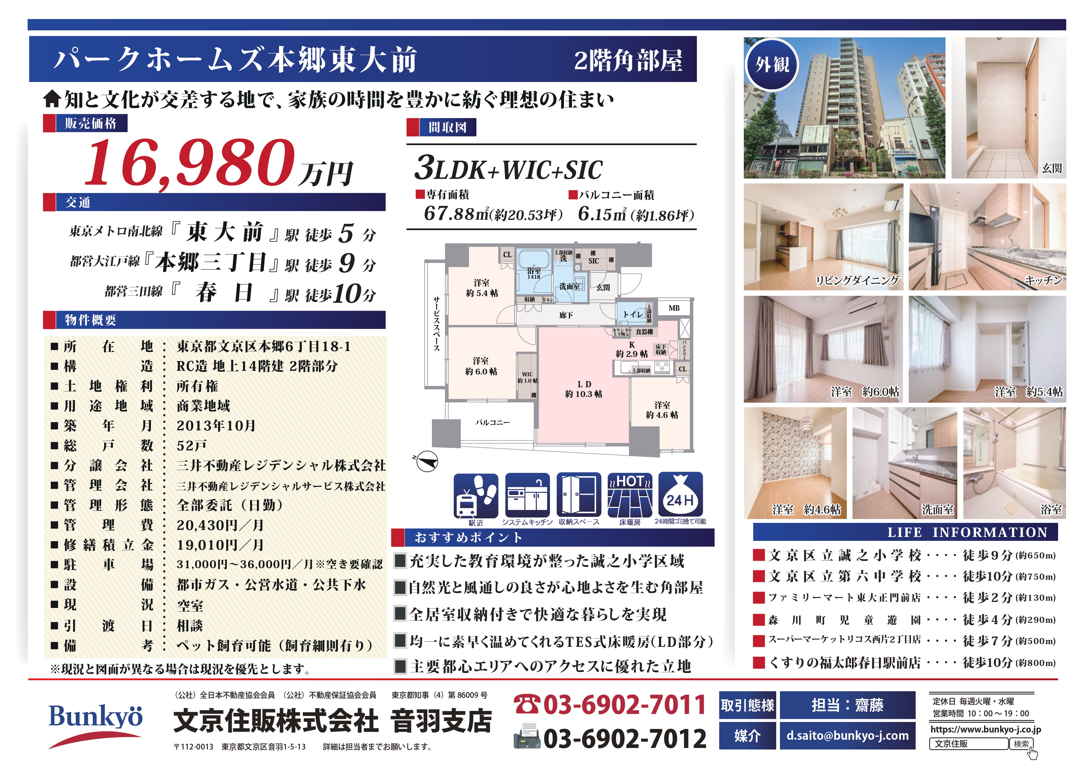 【委任物件】パークホームズ本郷東大前(文京区区本郷6丁目)