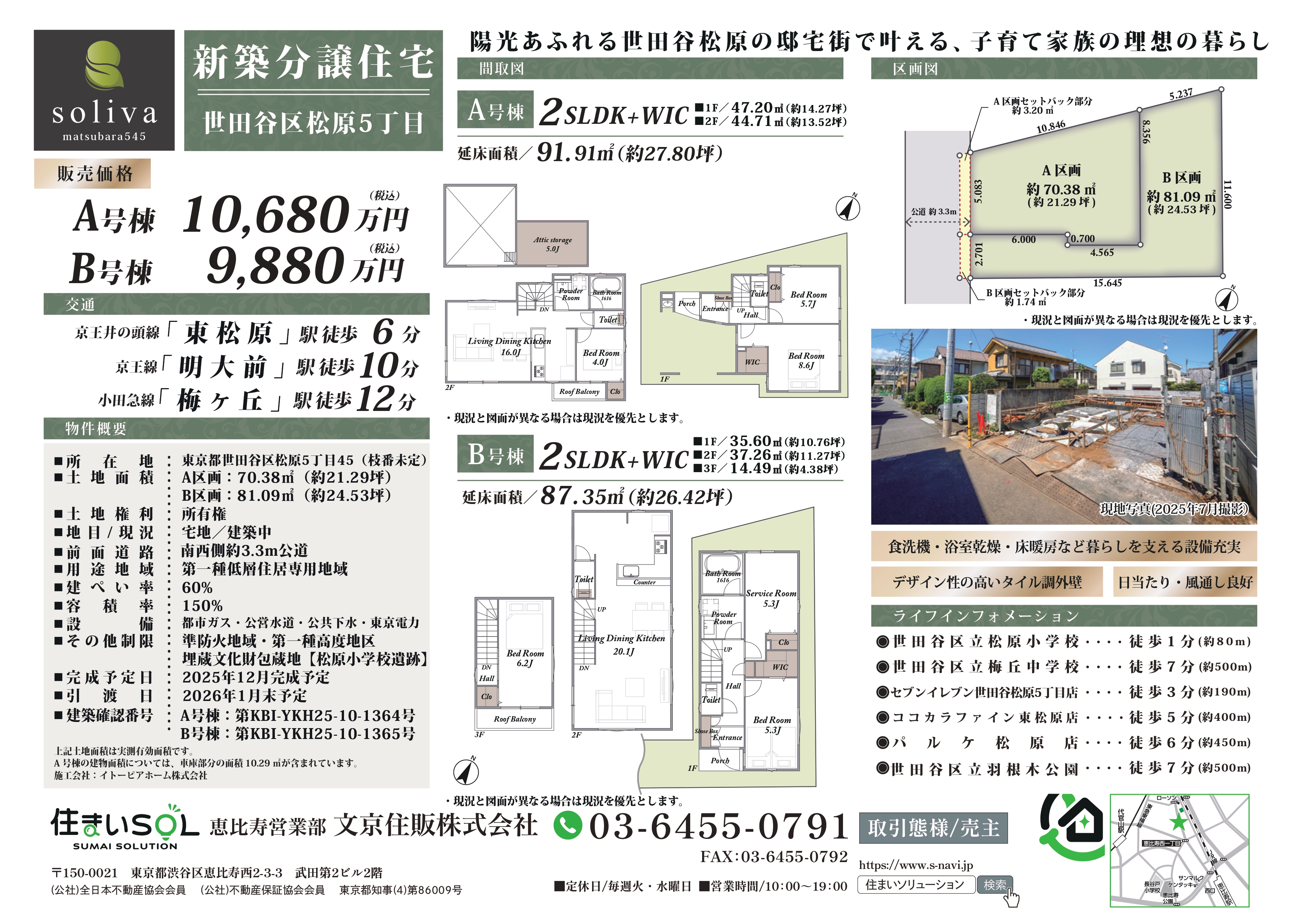 本日、世田谷区松原5丁目にて弊社売主の新築分譲住宅2棟〈Soliva 松原545〉の販売を開始いたしました。